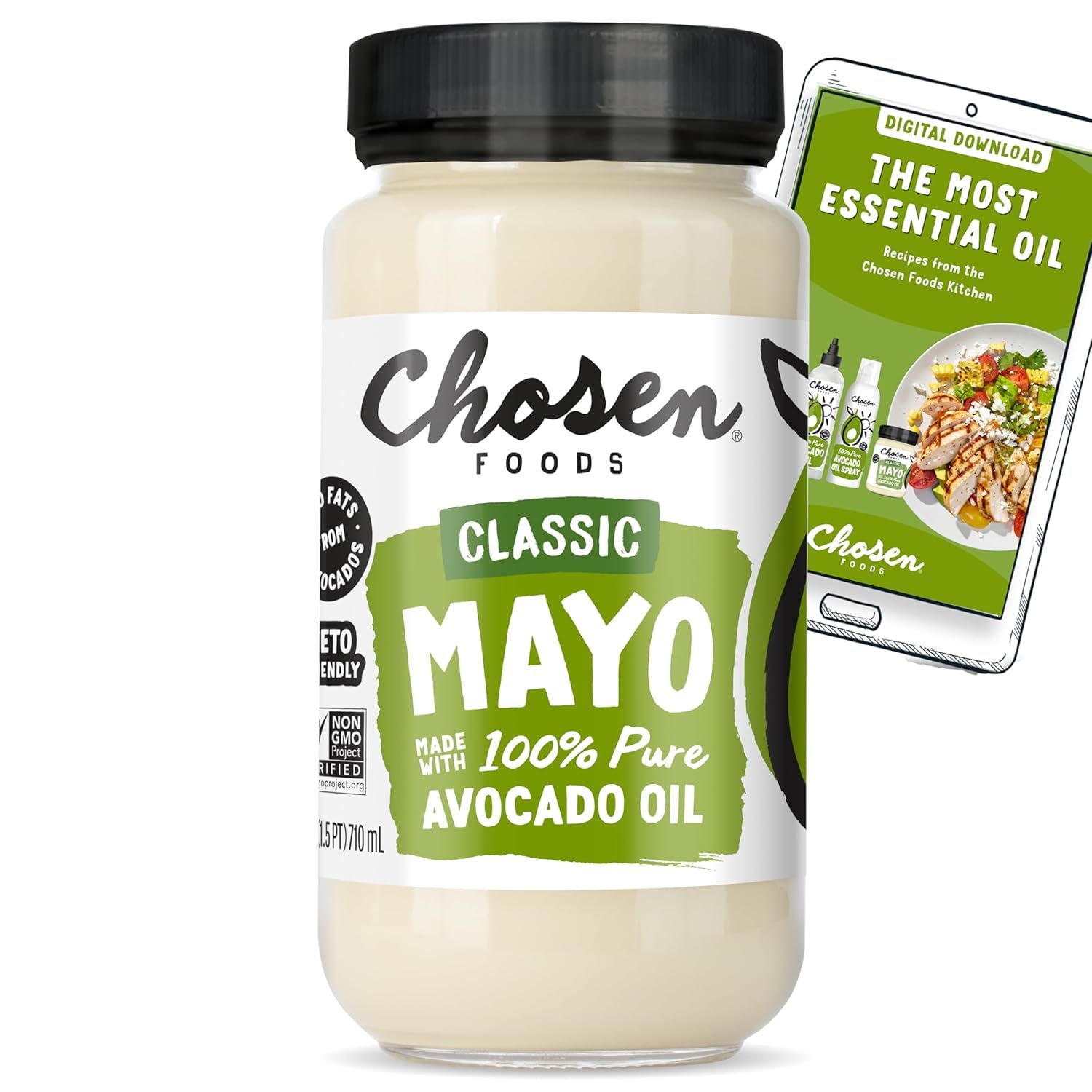 Chosen Foods 100% Avocado Oil-Based Classic Mayonnaise, 24 floz, Gluten & Dairy Free, Low-Carb, Keto Diet Friendly, Mayo for Sandwiches, Dressings and Sauces, Made with Cage Free Eggs
